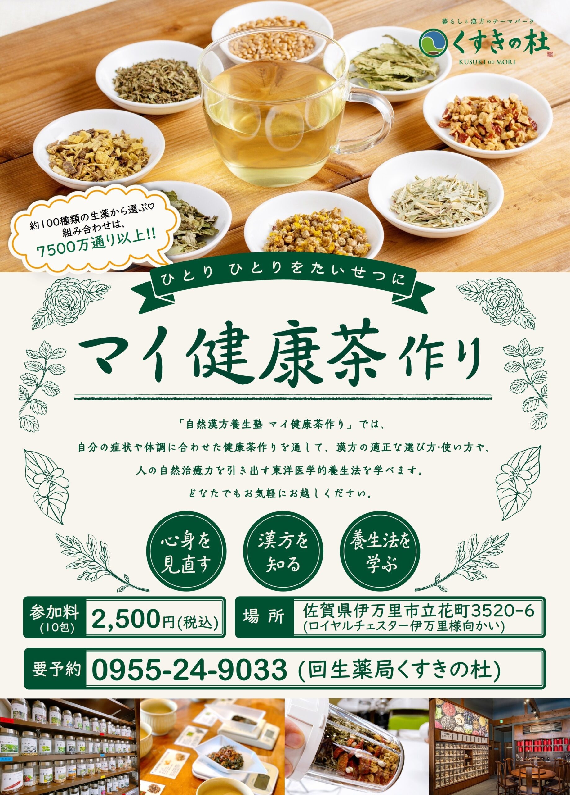 所要時間は1時間〜1時間30分です ご予約ください! 「マイ健康茶づくりワークショップ希望 お名前(人数) 日時 連絡のつく電話番号」 【ご予約・当日受付場所】 回生薬局くすきの杜 TEL 0955-24-9033 (く … 続きを読む 「マイ健康茶づくりワークショップ」ご予約・お申し込みご案内