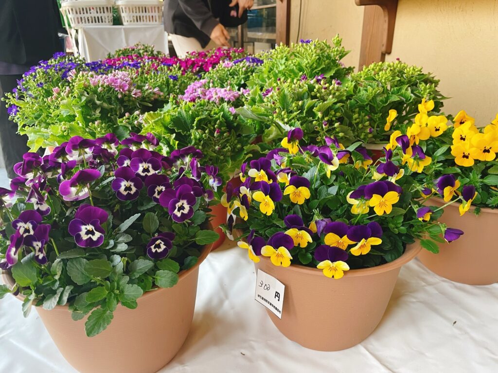 日頃の作業学習で製作した作品や栽培された野菜やお花を