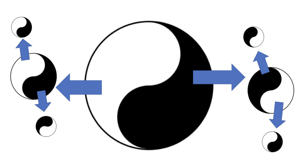 残った陽の集団も自然の法則のバランスを取ろうとして陰と陽に分かれていくというわけです。
